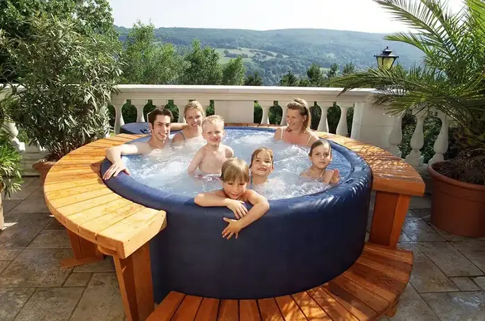 a warm soak in a Softub relieves the pain of muscle and joint stiffness, improves blood circulation and releases endorphins which is a natural pain reliever.