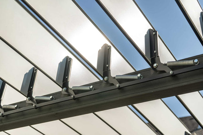 Engineered with SolarEdge Autonomy, Stella’s motorized louvers are fully powered by solar panels. Its SlopeFlow Rain System ensures superior water management, preventing infiltration, while its snow load capacity of at least 30 lbs/ft² ensures year-round durability.